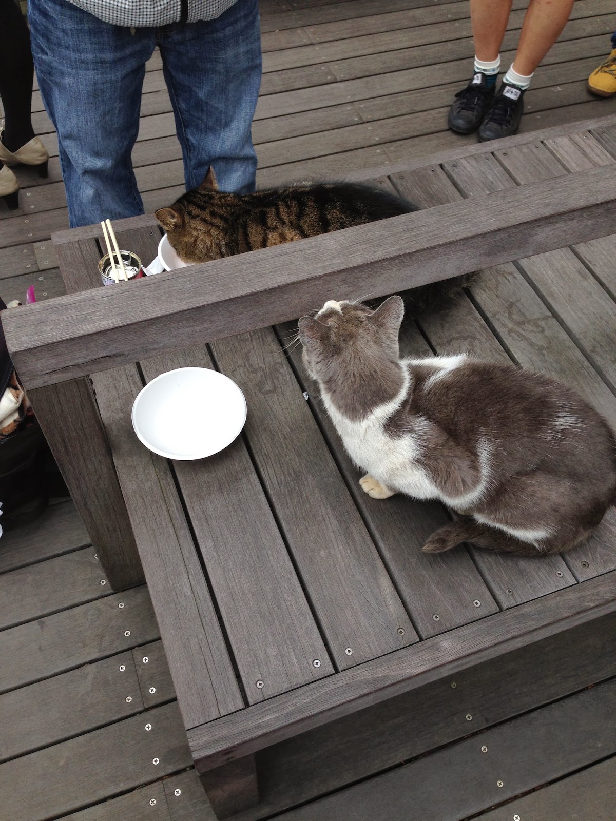 明明今天這麼冷!這麼溼!我想應該就是因為花火大會吧,不過現在才中午就有人潮了!!