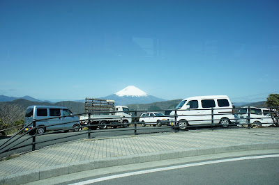 慶幸這天是個超級大晴天,萬里無雲!我記得這是經過大涌谷附近的時候,因為大涌谷正在蓋新的遊客中心(的樣子),附近有點塞車,塞車時司機還提醒大家看窗外有富士山。
