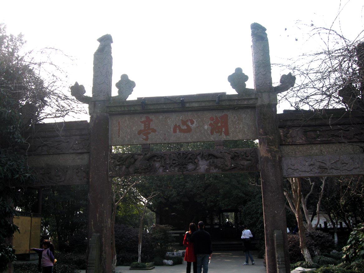 對湖心亭的印象大約是停留在國文課本裡傳說有孌童癖的張岱的<湖心亭看雪>,景色之美令人神往(屁),這次就真的去了。
