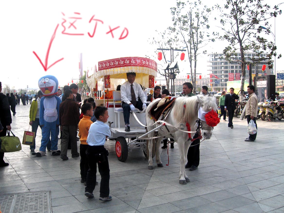 昨天下午則是去了寧波最近新開的超大商城。門口不知為何有馬車和人群,於是湊過去看,有個東西吸引我的目光——