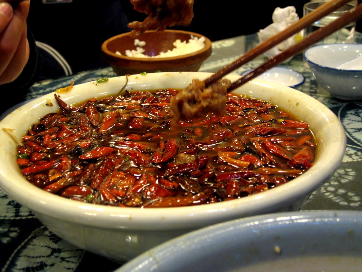 ↑水煮牛肉。上面全都是辣椒囧